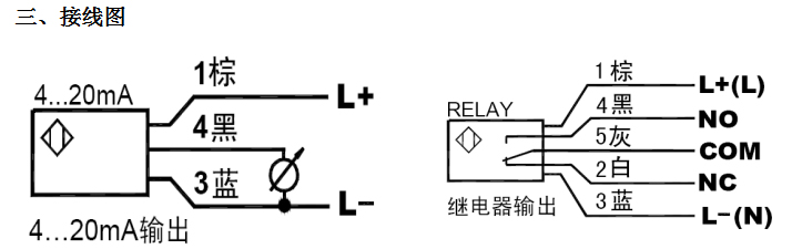 信號輸出PNP, NPN,繼電器,模擬量(4...20mA) ,常開+常閉(SPDT)