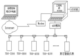 操作站到適配器之間采用高速串行或多串口通信。傳輸距離不大于20米。適配器到儀表之間采用RS485總線網(wǎng)絡(luò)型或RS232一一對應輻射型。傳輸距離不大于1500米。