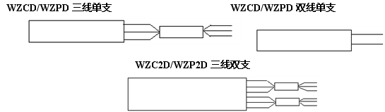 3WZC2D-2×12×100-3B-0-Cu50表示:電機(jī)用銅電阻雙支溫度傳感器、本體尺寸2×12×100mm,3根引線屏蔽線,每根引線長(zhǎng)度400mm,引線屏蔽,分度號(hào)為Cu50的銅電阻