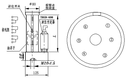 報警點接線盒:端子1、2為上限,液位高于上限時斷開,低于上限時閉合;端子34為中點,液位高于中點時斷開,低于中點時閉合;端子5、6為下限,液位低于下限時閉合,高于下限時斷開。