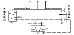 ① 開啟:在二位三通電磁先導(dǎo)閥的手動(dòng)旋鈕處于與縱軸平行的“一”位置情況下,旋轉(zhuǎn)二位三通電磁先導(dǎo)閥的手動(dòng)旋鈕,實(shí)現(xiàn)開啟手動(dòng)操作,動(dòng)作程序如自動(dòng)開啟程序。