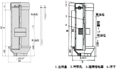 1)、油位信號(hào)器底面到最低油位高度至少100mm,出廠時(shí)按此定低油位信號(hào);